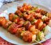 - Una vez dorados agregamos la pechuga de pollo cortada en tiras, salpimentamos y salteamos el conjunto.